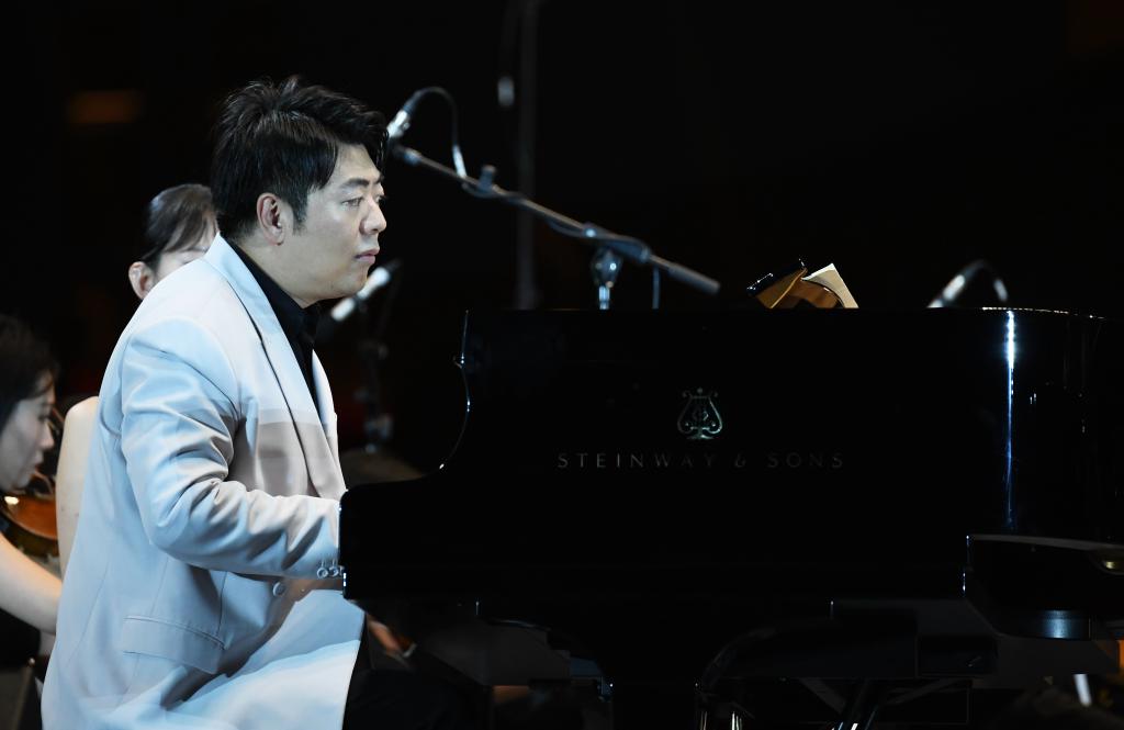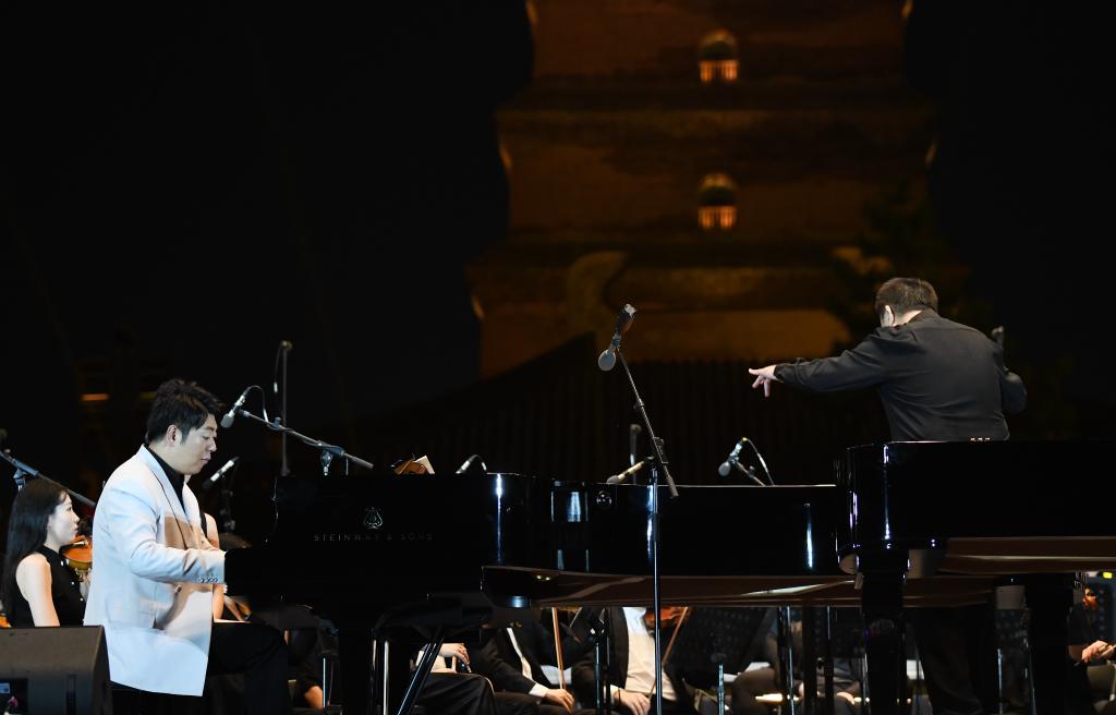 9月10日晚,鋼琴家郎朗與西安交響樂(lè)團(tuán)在西安大雁塔北廣場(chǎng)戶外公演。新華社記者 李一博 攝
