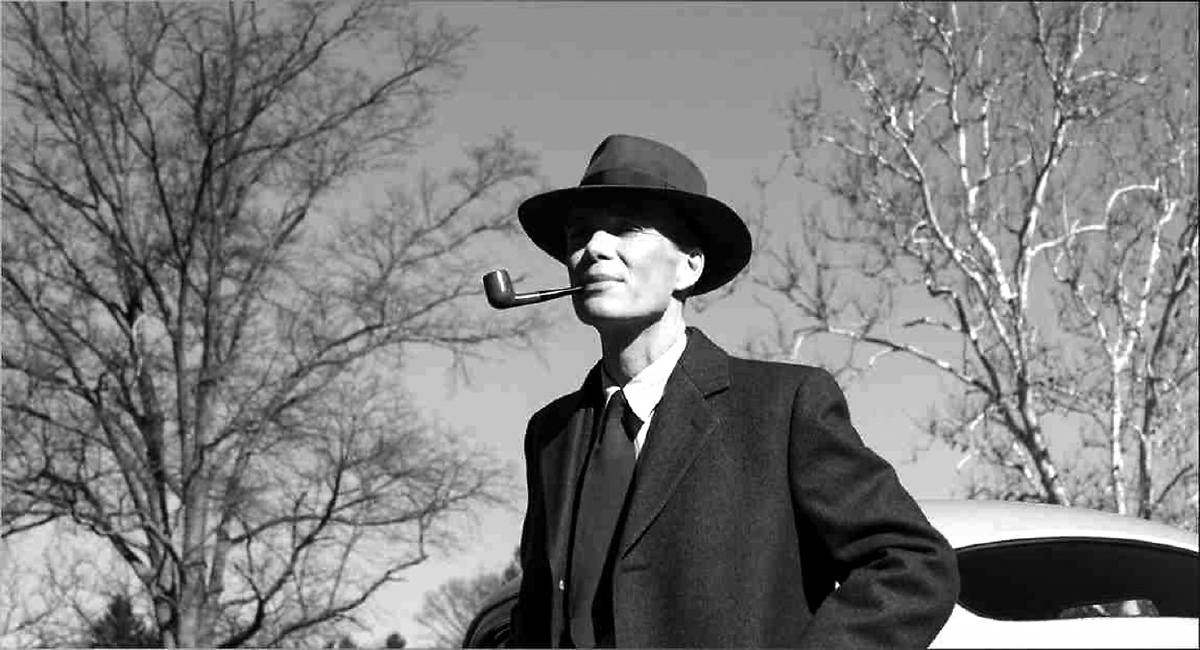 奧本海默被稱作“美國的普羅米修斯”,影片也是從這個(gè)典故開局的,這意味著奧本海默不僅向榮耀進(jìn)發(fā),還將經(jīng)受普羅米修斯式的懲罰與煎熬。奧本海默曾在電視節(jié)目中眼瞼低垂地說:“我現(xiàn)在成了死神,世界的毀滅者!”是的,人類自他開始,擁有了自毀的能力。不過諾蘭并沒有過于渲染這種負(fù)面情緒,除了演講時(shí)閃過的錯(cuò)覺,以及聽證會(huì)上赤裸裸的幻象,奧本海默大多時(shí)候都是率性而為,或麻利利的,哪怕后期的憂郁深邃中,也不乏風(fēng)骨。影片對(duì)歷史的關(guān)鍵節(jié)點(diǎn)和細(xì)節(jié)不遺余力,但對(duì)鏡像中走來的歷史人物又是呵護(hù)有加,以至于看上去,他更像是諾蘭的奧本海默——一個(gè)比奧本海默還奧本海默的奧本海默。