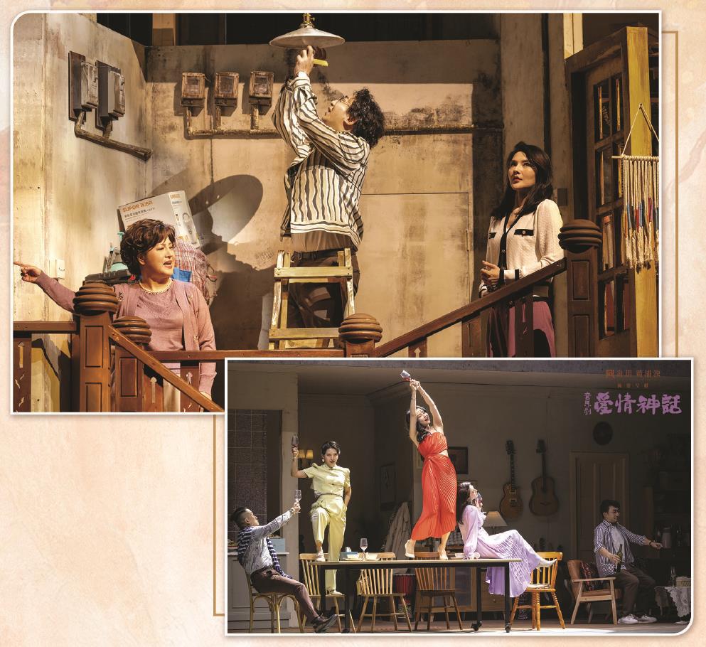 李小姐家逼仄的木樓梯看起來有些年頭了,有限的空間里塞滿了雜物,老城區(qū)居民正是這樣“螺螄殼里做道場”的;二樓房間墻上還貼著小瑪雅的兒童畫,書架上則擺滿了她的課外讀物。老白家每個(gè)角落同樣充滿了生活細(xì)節(jié),絕大部分物品真實(shí)可用,角色仿佛能夠拎包入住……作為音樂劇《愛情神話》的監(jiān)制,徐崢在建組日要求的“電影級置景”,最終在舞臺上得到完美呈現(xiàn)。