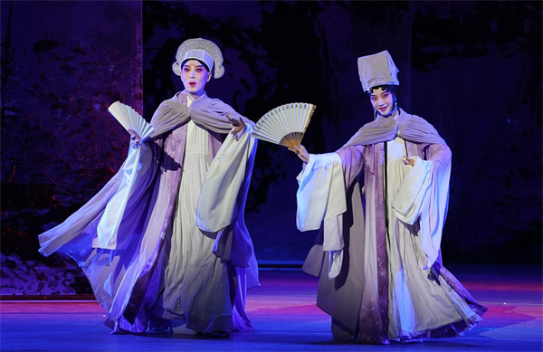 施夏明、單雯兩位昆曲名角的演唱更是爐火純青,動人心魄。伴隨著清婉動人、中西融合的音樂旋律,在至幻至美的舞臺上,真摯熾熱的動人情感化為婉約優(yōu)美的昆曲曲牌,既充滿了生活的精致與情趣,又超越了塵世的喧囂和煙火之氣。當沈復和蕓娘離別時,悲慟情境隨著唱詞和曲調的一唱三嘆無限放大,散發(fā)出強大的感染力。而當“余韻”尾聲,沈復和蕓娘攜手走向遠方,走進書中,又留給人們無盡的想象和感動。