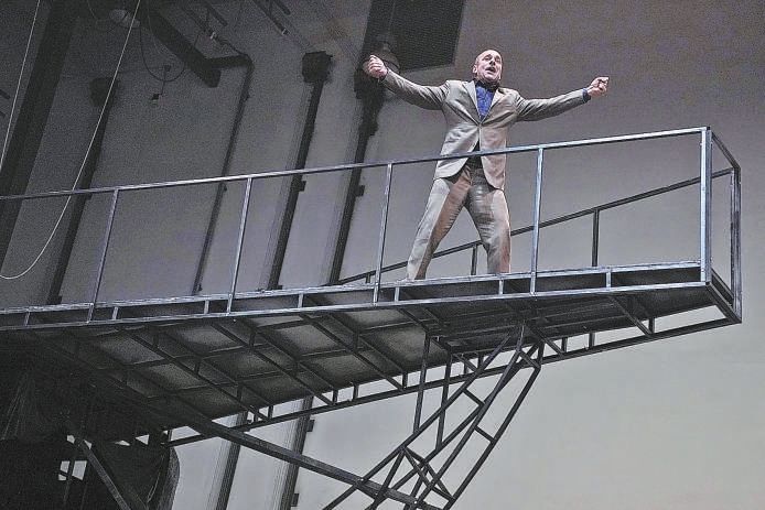 在全劇重中之重的高潮部分,珊塔跳入海中,荷蘭人的大船傾覆在高浪里,令人心驚哀慟。而在有限的舞臺(tái)空間里表現(xiàn)沉船場(chǎng)景,需要一些巧思,“船上的液壓裝置會(huì)讓船頭先翹起來,展現(xiàn)船艙進(jìn)水后真實(shí)的物理效果,之后再用整個(gè)主舞臺(tái)載著船頭下降,雙重疊加,在視覺上加大船體的錯(cuò)位感?!崩罡鶎?shí)說。宏偉的舞臺(tái)制作承托起瓦格納波瀾迭起的音樂、故事中犧牲與救贖的哲學(xué)命題,讓這一版《漂泊的荷蘭人》成為當(dāng)之無愧的“大戲”。
