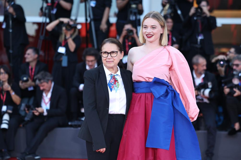 9月6日,在意大利威尼斯,電影《寂靜的朋友》導演伊爾迪科·埃涅迪(左)和演員盧娜·韋德勒出席閉幕式。新華社記者 李京 攝