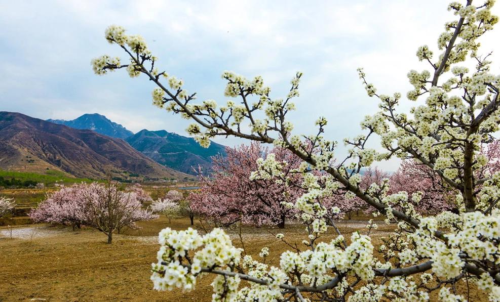 沿著長(zhǎng)城一號(hào)旅游公路向西而行,一片片的杏樹(shù)接踵而來(lái),滿樹(shù)的杏花你挨著我,我擠著你,嬌艷欲滴,微風(fēng)拂過(guò),清香味撲鼻而來(lái)。盛開(kāi)的杏花一大片一大片的,粉嘟嘟的,花苞里微微泛著點(diǎn)紅,像害羞的少女嬌嫩嫩的,李峪的杏花開(kāi)了。