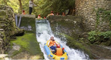 2026年4月25日,位于廣西桂林市陽朔縣興坪鎮(zhèn)的龍頸河景區(qū),游客正在體驗(yàn)驚險(xiǎn)刺激的漂流。黃勝林?jǐn)z(人民圖片網(wǎng))