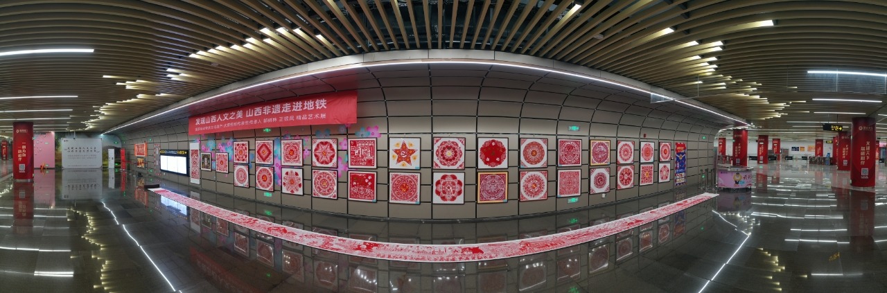 國家級非物質(zhì)文化遺產(chǎn)代表性項(xiàng)目太原剪紙?jiān)谔罔F2號(hào)線長風(fēng)街站展示。井宇豪 攝