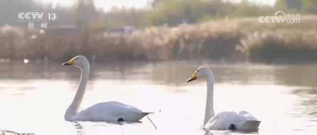 除公園外,在大天鵝頻繁活動的農(nóng)田區(qū)域,當?shù)卣蔡崆白龊昧藴蕚洹?025年,三門峽在黃河沿線共種植了1500多畝的小麥、荷花、蒲草等,為大天鵝們漫長的越冬季提供充足食源。