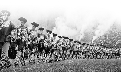 苗族趕秋節(jié)時(shí),人們?cè)凇扒飯?chǎng)”表演遷徙舞。中國(guó)農(nóng)業(yè)博物館提供