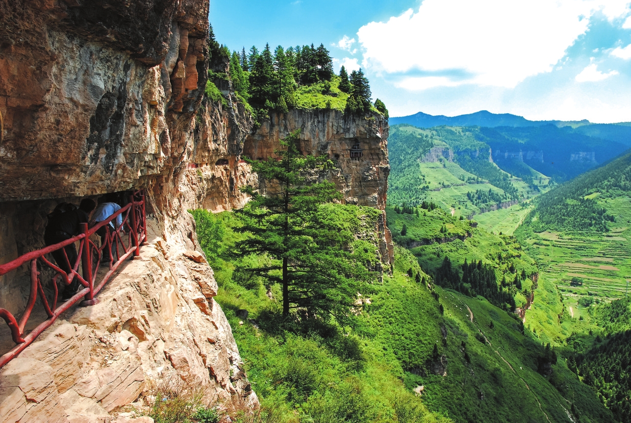 荷葉坪 潘曉華攝 荷葉坪 荷葉坪是華北地區(qū)最大的亞高山草甸,素有“高原翡翠”之美譽。因其山頂平坦如盤,形似荷葉,故名“荷葉坪”。荷葉坪現(xiàn)存的隋代長城遺跡沿山脊蜿蜒起伏,與五寨筆架山邊墻相連,墻體夯土痕跡清晰可辨,是研究北方游牧文明與中原農(nóng)耕文明交融的重要實物佐證。據(jù)地方史料及民間遺存印證,楊六郎曾在此屯兵練兵,北將臺、南將臺兩座高臺便是當年的點將之所。 每到盛夏,荷葉坪一碧萬頃,百草豐茂;山花爛漫,涼爽宜人。草甸之上最神奇的莫過于那數(shù)十個“海子”,這些圓形高山湖泊“遇旱不涸,遇澇不溢”,水質(zhì)清澈如鏡。草甸周邊還分布著云杉、華北落葉松等植被,孕育著黨參、黃芪等多種名貴藥材,是名副其實的“生態(tài)寶庫”。 2021年,荷葉坪被列入國家草原自然公園試點,如今已成為避暑度假與文化尋蹤的勝地。登臨其頂,既可觸摸長城殘垣的歷史溫度,聆聽楊家將的英雄傳說,又能擁抱草甸海子的自然靈秀,感受黃土高原上獨有的生態(tài)與人文共鳴。 石門懸棺 在寧武縣小石門村西的一處幽僻山谷間,藏著北方獨有的人文奇觀——石門懸棺,它既是蘆芽山景區(qū)的核心景點,更是長江以北迄今發(fā)現(xiàn)的唯一崖葬群。谷口天然石壁如巨門洞開,將這片秘境與塵世巧妙相隔。 踏入谷中便見滿目蔥蘢,翠蓋遮頂,百米高的崖壁陡直如削,崖隙間的松柏旁逸斜出,與壁上懸棺相映成景。溪澗在谷底潺潺流淌,負氧離子裹挾著草木清香漫溢山間,干燥的崖壁為棺木形成天然庇護所。陽光穿透枝葉,在懸棺上投下斑駁光影,光影流轉(zhuǎn)間,仿佛能聽見歷史的回響。 據(jù)了解,這片懸棺群涵蓋洞穴式、懸吊式、懸樁式、棧道式等類型,堪稱“崖葬博物館”。棺木或以鐵鏈懸吊,或嵌于巖洞,或架于木樁,單棺獨懸有之,雙棺并列有之,上有崖穹護頂,錯落分布,下處避水、陰涼、干燥之處,距地面最高達數(shù)十米,可嘆先人的智慧與苦心。如今,這片奇觀已成為解讀北方喪葬文化的獨特樣本,既是自然與人文的共生之作,更是黃土高原上永不褪色的文明印記。 懸空村 從寧武縣城西行約70公里,穿過層層松林,便可見百米崖壁如斧劈刀削,數(shù)十座木屋沿崖勢錯落,恍若“天上人家”,這里就是王化溝村。從谷底仰望,又似空中樓閣,故而人們還稱其為“懸空村”。懸空村順崖就勢而建,碗口粗的原木斜插崖縫為柱,鋪板相連成路,行走時偶有輕晃,卻能憑欄望見云海漫過馬侖草原,瞥見蘆芽山主峰隱于天際。干燥的崖壁為屋舍提供天然庇護,晨霧中炊煙裊裊,與松濤、溪聲共譜山野樂章。 懸空村匿于深山老林中,故村民的生活方式仍然比較傳統(tǒng),主要交通工具是牲畜,村里的生活必需品都是靠騾馬運送。莜面、豆面和土豆是村民的主要食物,村中山泉長流不斷,是全村日常生活的水源。村民房舍坐北向南,避風(fēng)向陽,依山而靠,高低錯落,下面以豎立在天然石壁上的大木柱為支撐,看似危如累卵,實則相當堅固。 圓木為壘、土石為墻,擋不住歷史前進的步伐;牛羊成群、雞豕?jié)M圈,抵不過時代快速的變遷。如今,懸空村已發(fā)生了翻天覆地的變化。近年來,寧武縣以全域旅游和美麗鄉(xiāng)村建設(shè)為重要抓手,逐漸加大對古村落的保護和維修力度,隨著其知名度不斷提升,游客紛至沓來,許多村民也回遷居住,村子再現(xiàn)往日生機。 雷鳴寺 雷鳴寺位于汾河源頭的崖壁之上,此處山形如空甕,地下暗河與崖壁激蕩,水聲如雷貫耳,寺名便源于這天地交響的壯闊意境。寺廟坐北向南,建于半山之上。從戲臺開始,需登108級臺階才能到達山門。山門兩側(cè)有配房,中軸線上設(shè)有木牌坊,兩側(cè)各建鐘鼓樓。進入山門后,東西禪房簇擁著七間正殿,其中真武殿位于中間,供奉著真武大帝。 雷鳴寺周圍的自然景致與水文奇觀渾然一體,古松翠柏掩映朱檐,山泉溪流縈繞階前,寺旁的泉眼汩汩涌動,清澈泉水從石崖龍口奔涌而出。登高遠眺,樓子山頂?shù)目情w與寺宇上下呼應(yīng),林海與溪流構(gòu)成一幅立體的山水畫卷。 雷鳴寺的始建年代雖無確切記載,但據(jù)明清文獻佐證,在唐代已具雛形,明正德年間首次大規(guī)模重修,清同治年間由學(xué)者徐松龕撰寫重修碑文。20世紀末,當?shù)卣涝季种亟ɡ坐Q寺,現(xiàn)存建筑雖為新構(gòu),卻完整保留了古寺規(guī)制:大雄寶殿采用全木質(zhì)結(jié)構(gòu),梁架間的石雕、磚雕紋樣仍可見明清遺韻。 如今的雷鳴寺,晨鐘暮鼓與汾河濤聲共鳴,既延續(xù)著“梵音伴雷鳴”的千年意境,也成為解讀晉西北山水與人文共生密碼的必訪之地。 汾河源頭 汾河源頭位于管涔山北麓,是三晉大地的“母親河”、黃河第二大支流——汾河發(fā)源地,被譽為“晉地之根”。古籍《山海經(jīng)》云“管涔之山,汾水出焉”,這是關(guān)于汾河源頭的最早文字記錄。北魏酈道元《水經(jīng)注》中亦曾生動記錄,“汾水又南,與東、西溫溪合,水出左右近溪,聲流翼注。水上雜樹交陰,云垂煙接。自是水流潭漲,波襄轉(zhuǎn)泛”,將汾河源頭青峰疊嶂、云蒸霞蔚的景象描繪得有聲有色。 汾河源頭所處地形陡峭,起伏崎嶇,群山聳立,高峻巍峨,溝谷交錯發(fā)育,森林覆蓋率高。泉水從山腳下石壁縫隙中涌出,直接流入泉口前的方形池沼內(nèi),再通過一石鑿的龍口噴瀉,進入寬闊的汾河河道之中。清道