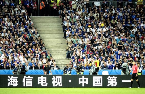 “海信電視,中國第一”!2016年6月10日,法國巴黎圣丹尼斯球場,隨著歐洲杯揭幕戰(zhàn)打響,中國品牌海信的廣告出現在全球球迷面前。這是歐洲杯56年來第一次迎來中國贊助商,海信的廣告也在未來1個月內出現在全部51場歐洲杯比賽中。