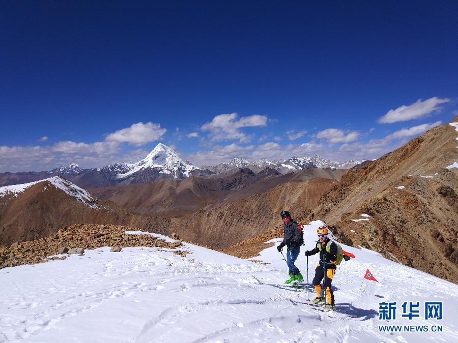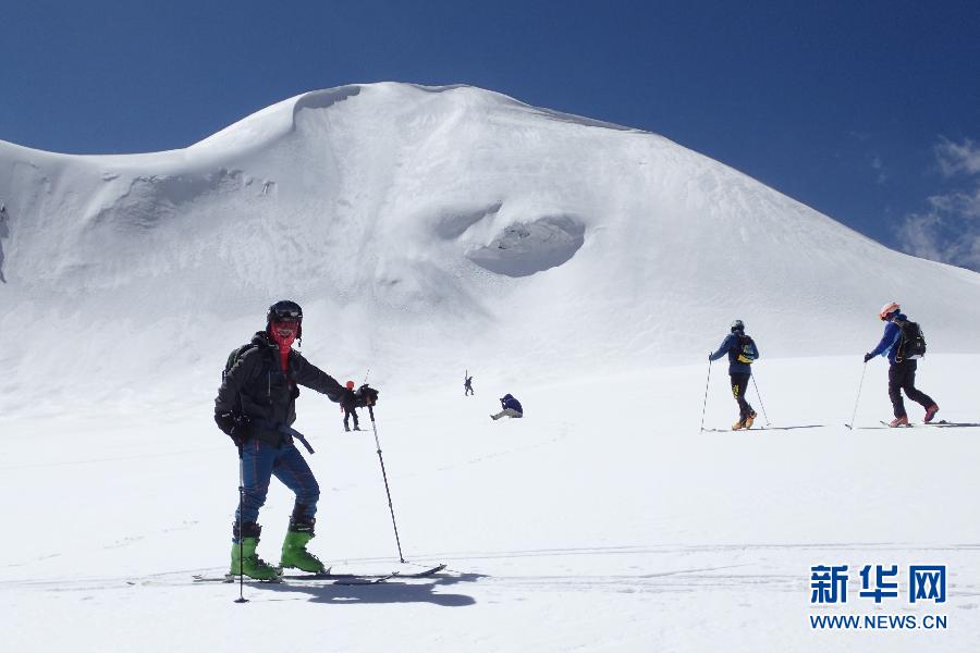 ↑記者第一次見(jiàn)到劉百靈是在第十六屆西藏登山大會(huì)滑雪登山項(xiàng)目的營(yíng)地——洛堆峰雪線處,海拔5600米。劉百靈膚色黑得發(fā)亮,與身邊長(zhǎng)年從事高山訓(xùn)練的藏族教練無(wú)異。但細(xì)問(wèn)起來(lái),他說(shuō)自己生在湖南,現(xiàn)居杭州,是地道的南方人。 因?yàn)閷?duì)戶外運(yùn)動(dòng)尤其是對(duì)滑雪的執(zhí)著,劉百靈的膚色變了,過(guò)起了旁人眼中的另一種人生,也成了“異類(lèi)”。但他卻感謝自己成了“異類(lèi)”。這是10月4日,滑雪愛(ài)好者、“體育旅游”探索者劉百靈(左)在位于西藏自治區(qū)當(dāng)雄縣羊八井鎮(zhèn)的洛堆峰雪坡上練習(xí),此處海拔約5700米。遠(yuǎn)處的山峰是海拔7048米的窮母崗日峰。 新華社發(fā)