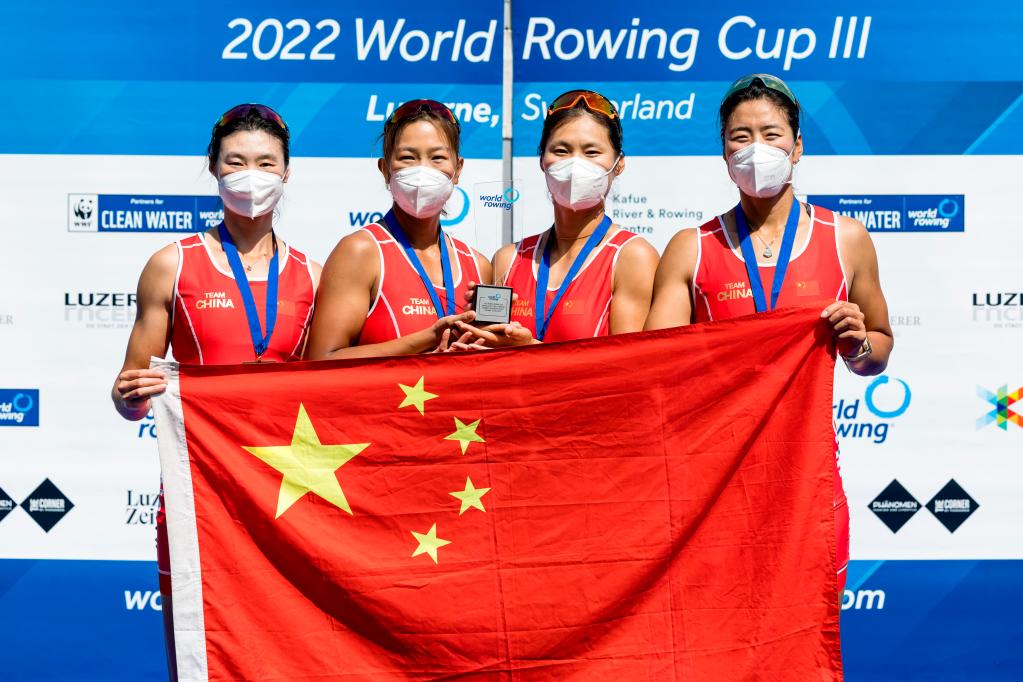 在盧塞恩站女子四人雙槳決賽中,由三名奧運(yùn)冠軍陳云霞、呂揚(yáng)、崔曉桐與小將魯詩(shī)雨組成的中國(guó)隊(duì)從開賽就確立了領(lǐng)先優(yōu)勢(shì),最終以6分14秒68的成績(jī)奪冠。在此前的塞爾維亞貝爾格萊德站和波蘭波茲南站比賽中,中國(guó)隊(duì)分獲該項(xiàng)目銀牌和金牌,最終憑借積分優(yōu)勢(shì)獲得年度總冠軍。