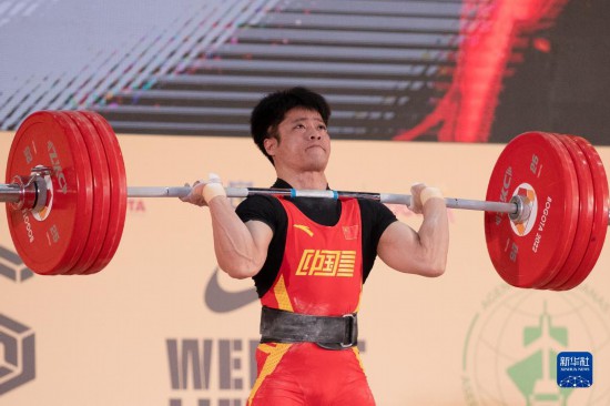 中國(guó)隊(duì)李發(fā)彬7日在波哥大舉行的2022舉重世錦賽男子61公斤級(jí)比賽中,拿下抓舉、挺舉和總成績(jī)?nèi)?xiàng)冠軍,并打破挺舉世界紀(jì)錄。