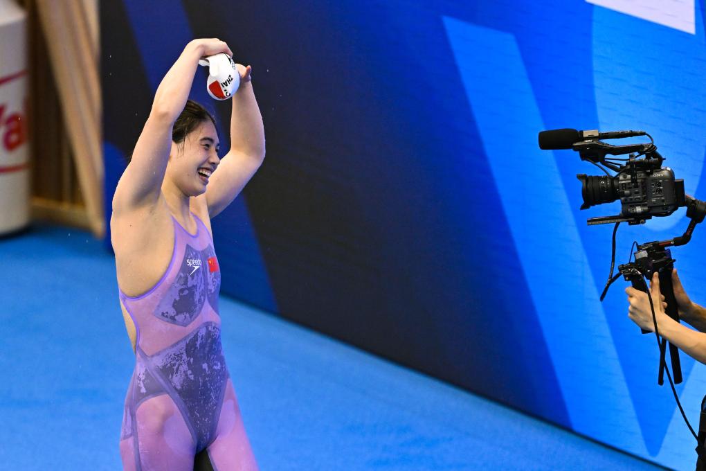 覃海洋摘金短短幾分鐘后,中國蝶泳名將張雨霏在女子100米蝶泳決賽中以56秒12的成績獲得冠軍,如愿以償?shù)財(cái)[脫了世錦賽“銅牌專業(yè)戶”的稱呼,奪得個(gè)人首枚世錦賽金牌。雖然在東京奧運(yùn)會拿到200米蝶泳冠軍,但張雨霏在世錦賽上一直不太順利,在2022年布達(dá)佩斯世錦賽女子蝶泳從50米到200米三個(gè)距離的比賽中全部獲得銅牌。