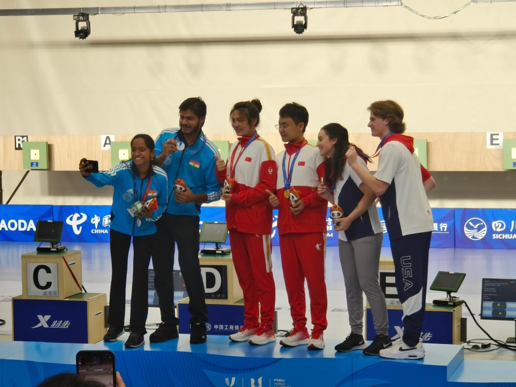 新華社成都8月2日電(記者劉寧、王春燕)成都大運會開賽以來,中國大學(xué)生體育代表團(tuán)捷報頻傳。2日,中國隊有9枚金牌入賬,以36金12銀12銅的成績繼續(xù)領(lǐng)跑金牌榜。射擊賽場上演暖心一幕,印度女選手瓦拉里萬在全場的祝福聲中度過了一個終生難忘的生日。