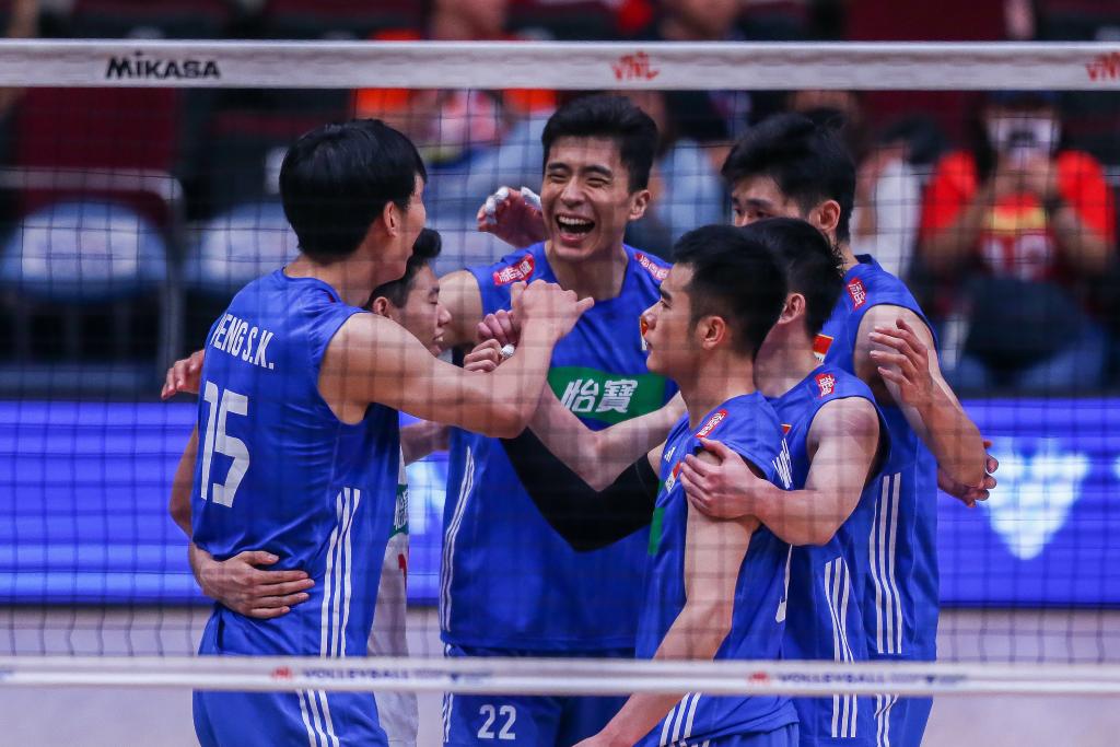 7月9日,中國隊球員在比賽中慶祝得分。當日,在菲律賓帕賽舉行的2023年世界男排聯(lián)賽菲律賓站比賽中,中國隊以1:3不敵加拿大隊。新華社發(fā)(烏馬利攝)