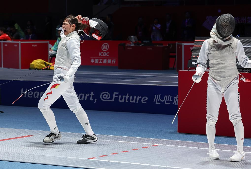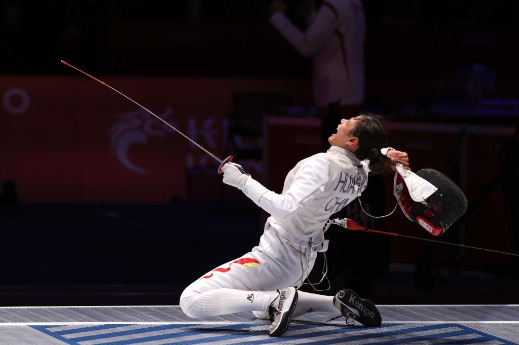 25日,杭州亞運(yùn)會(huì)女花個(gè)人決賽中,隨著黃芊芊刺中制勝一劍,顯示器上的比分定格在15:8。這位21歲的中國女花新星,為中國擊劍隊(duì)斬獲本屆亞運(yùn)會(huì)首金。