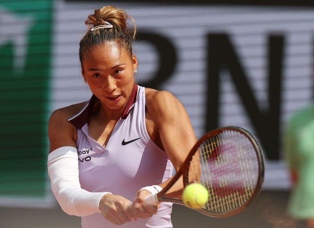2025年6月3日,鄭欽文在2025法國網(wǎng)球公開賽女子單打四分之一決賽中。新華社記者 高靜 攝