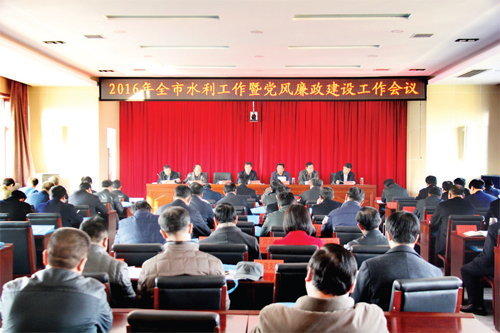 2016年全市水利工作暨黨風(fēng)廉政建設(shè)工作會(huì)議現(xiàn)場