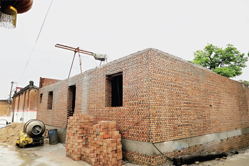 7月20日上午,記者驅(qū)車來到忻府區(qū)解原鄉(xiāng)北趙村。在一個(gè)緊鄰村委會(huì)北側(cè)的逼仄巷子里,記者見到了這棟已經(jīng)停工的紅磚房。一層和地下室主體已經(jīng)建成,修葺齊整的墻面與周圍的土階茅屋形成了鮮明的對(duì)比,沙子、攪拌機(jī)堆放在旁邊,讓本就不寬敞的巷子顯得更加擁擠不堪。