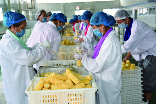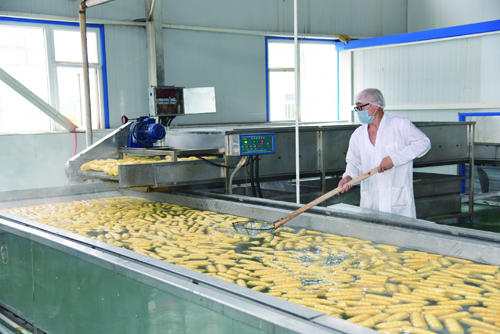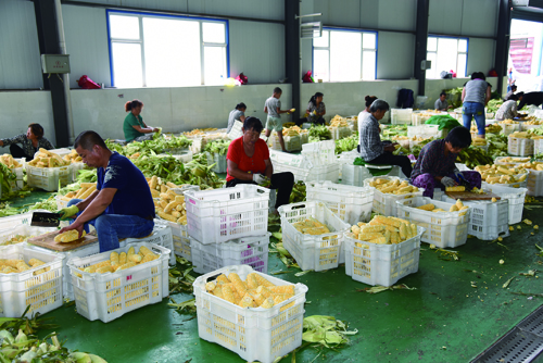 8月10日上午,已是代縣金九州農產品實業(yè)有限公司加工生產水果玉米的第5天,生產車間內外車水馬龍、熱火朝天,一派緊張繁忙的景象。