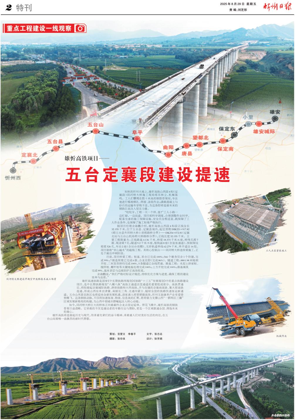 雄忻高鐵將連接起歷史與現(xiàn)代,傳承著先輩們的奮斗精神,承載著人們對美好生活的向往,在五臺山間奏響一曲激昂的新時代贊歌。