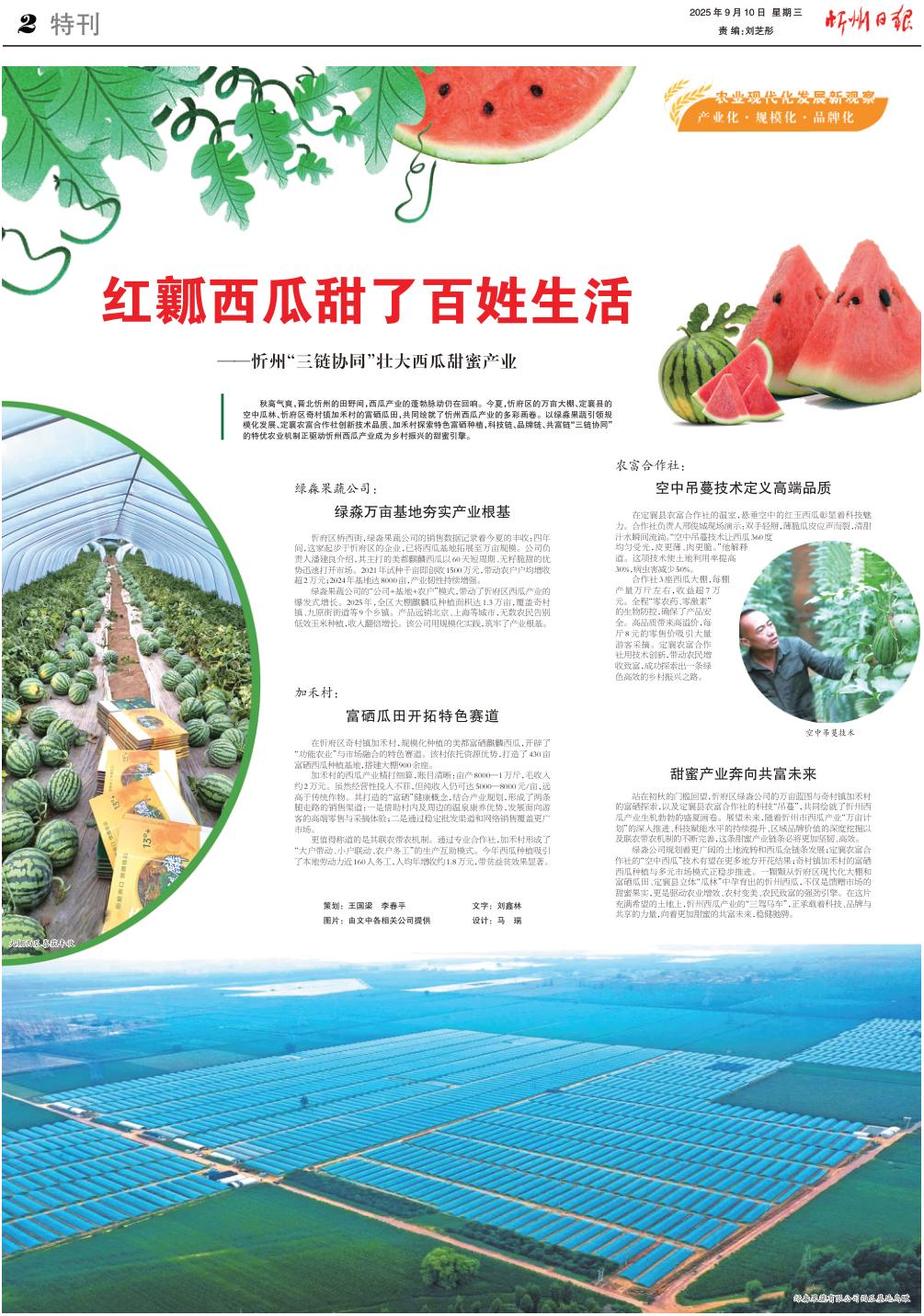 秋高氣爽,晉北忻州的田野間,西瓜產(chǎn)業(yè)的蓬勃脈動仍在回響。今夏,忻府區(qū)的萬畝大棚、定襄縣的空中瓜林、忻府區(qū)奇村鎮(zhèn)加禾村的富硒瓜田,共同繪就了忻州西瓜產(chǎn)業(yè)的多彩畫卷。以綠淼果蔬引領(lǐng)規(guī)?;l(fā)展、定襄農(nóng)富合作社創(chuàng)新技術(shù)品質(zhì)、加禾村探索特色富硒種植,科技鏈、品牌鏈、共富鏈“三鏈協(xié)同”的特優(yōu)農(nóng)業(yè)機(jī)制正驅(qū)動忻州西瓜產(chǎn)業(yè)成為鄉(xiāng)村振興的甜蜜引擎。