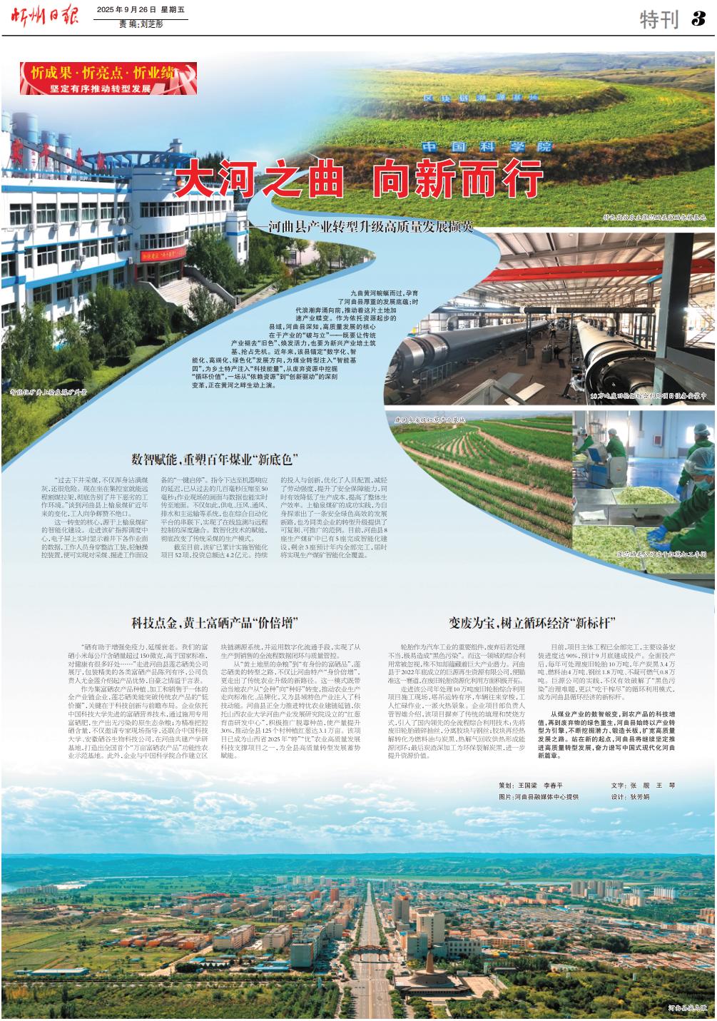 九曲黃河蜿蜒而過,孕育了河曲縣厚重的發(fā)展底蘊(yùn);時(shí)代浪潮奔涌向前,推動(dòng)著這片土地加速產(chǎn)業(yè)蝶變。作為依托資源起步的縣域,河曲縣深知,高質(zhì)量發(fā)展的核心在于產(chǎn)業(yè)的“破與立”——既要讓傳統(tǒng)產(chǎn)業(yè)褪去“舊色”、煥發(fā)活力,也要為新興產(chǎn)業(yè)培土筑基、搶占先機(jī)。近年來,該縣錨定“數(shù)字化、智能化、高端化、綠色化”發(fā)展方向,為煤業(yè)轉(zhuǎn)型注入“智能基因”,為鄉(xiāng)土特產(chǎn)注入“科技能量”,從廢棄資源中挖掘“循環(huán)價(jià)值”,一場從“依賴資源”到“創(chuàng)新驅(qū)動(dòng)”的深刻變革,正在黃河之畔生動(dòng)上演。