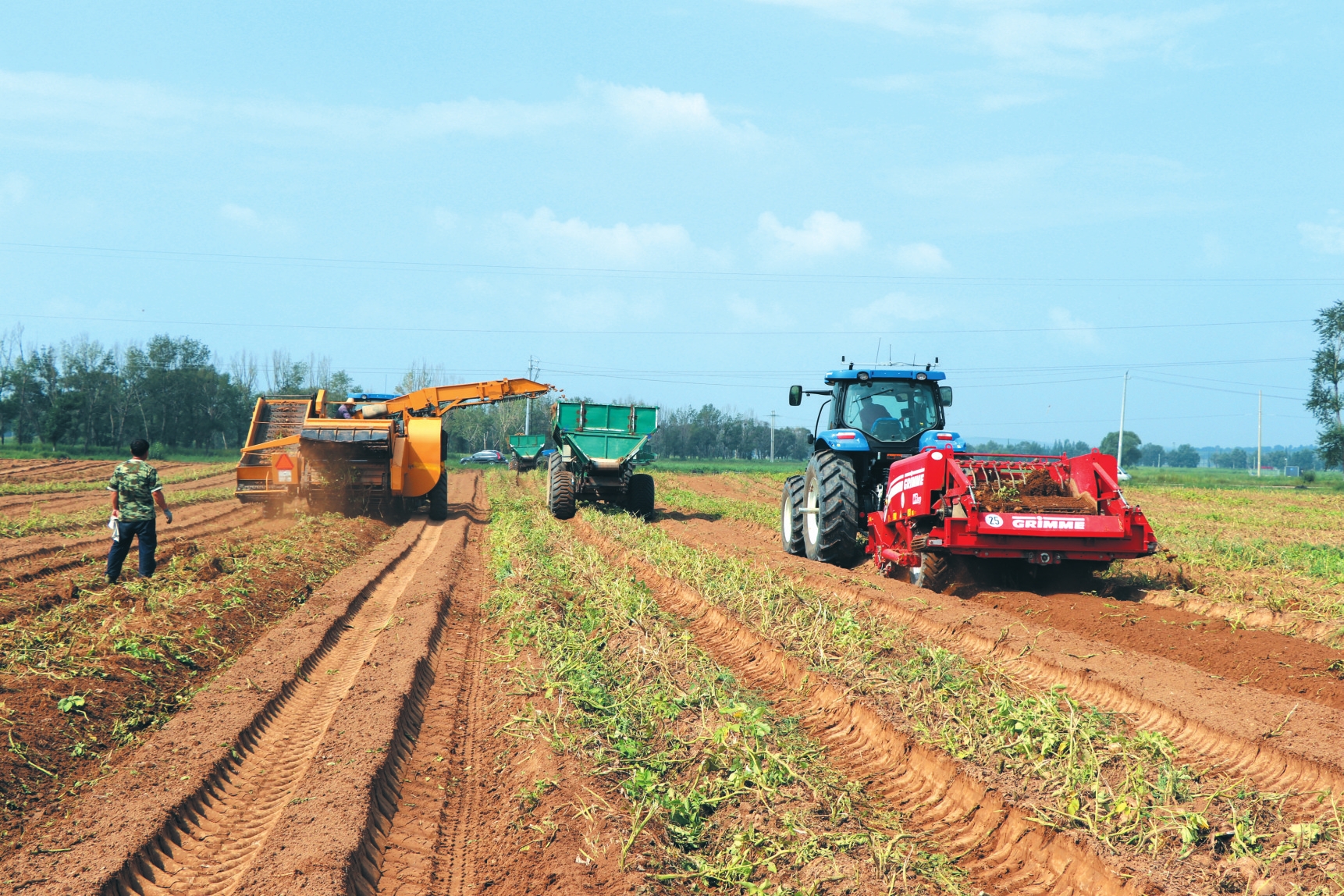 五寨縣現(xiàn)代化加工型馬鈴薯種植基地馬鈴薯機械化收獲現(xiàn)場。劉篤效攝