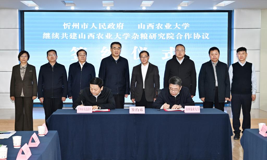 廖允成表示,忻州市資源稟賦獨(dú)特、農(nóng)業(yè)特色鮮明,是全省雜糧主產(chǎn)地和核心區(qū)。長(zhǎng)期以來(lái),校市始終保持密切合作關(guān)系,也結(jié)下了深厚友誼,尤其是山西農(nóng)大玉米研究所75年扎根忻州,得到了忻州市委、市政府和廣大群眾的大力支持。今天的簽約儀式既是對(duì)過(guò)去五年雙方精誠(chéng)合作成效的充分肯定,也掀開(kāi)了校市深化合作推動(dòng)雜糧產(chǎn)業(yè)高質(zhì)量發(fā)展、推動(dòng)特優(yōu)農(nóng)業(yè)提質(zhì)增效的新篇章。山西農(nóng)大將按照合作協(xié)議內(nèi)容,充分發(fā)揮人才、學(xué)科、科技等優(yōu)勢(shì),持續(xù)攻堅(jiān)雜糧產(chǎn)業(yè)關(guān)鍵核心技術(shù),推進(jìn)雜糧全產(chǎn)業(yè)鏈研發(fā),提升雜糧產(chǎn)業(yè)科技附加值,系統(tǒng)培養(yǎng)一批扎根一線的本土科技骨干和種植能手,讓更多科技成果快速在忻州轉(zhuǎn)移轉(zhuǎn)化,推動(dòng)雜糧產(chǎn)業(yè)高質(zhì)量發(fā)展,惠及更多百姓增收致富,讓“中國(guó)雜糧之都”金字招牌更加熠熠生輝。