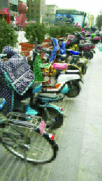 城區(qū)新建南路大欣城人行道、盲道經(jīng)常被自行車、電動車侵占,希望相關(guān)部門合理規(guī)劃、管理停車位,也希望市民加強(qiáng)公德意識,不要亂停亂放車輛。一網(wǎng)友攝于11月23日