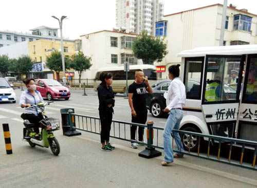 在城區(qū)體育廣場(chǎng)人行橫道上,交警對(duì)不禮讓行人的車輛進(jìn)行處罰,受到市民關(guān)注和贊同。