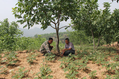 自古獨(dú)居一地的山藥蛋,如今又種上了核桃樹。這是五臺(tái)縣陽(yáng)白鄉(xiāng)桑院村從五臺(tái)農(nóng)商銀行陽(yáng)白支行貸款70萬元,實(shí)施科學(xué)種田的又一“絕招”。一般是1畝山藥蛋地間種10株核桃樹。畝產(chǎn)山藥蛋600公斤,收入960元。核桃樹畝產(chǎn)70公斤,收入1540元。共收入2500元,較單產(chǎn)山藥蛋900公斤的1440元增收58%。最大限度地發(fā)揮了坡地利用率。今年全村核桃樹“嫁”山藥蛋280畝,年產(chǎn)值可望達(dá)到70萬元,增收25.2萬元。(金俊賢 鄭光)