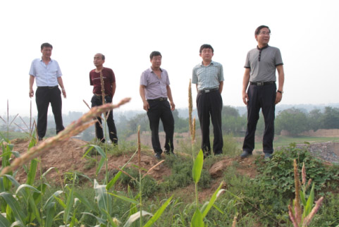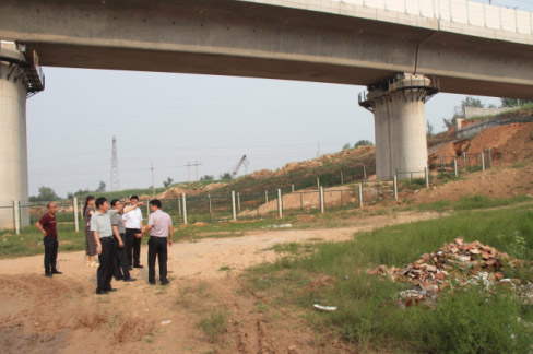7月29日烈日炎炎,忻州氣溫高達30多度,下午16時許,忻府區(qū)區(qū)長趙志偉,副區(qū)長寧康平,忻府區(qū)國土資源局局長白蕾,解原鄉(xiāng)黨委書記丁國倉,鄉(xiāng)長王萬榮和相關(guān)部門負責人,帶著忻州市委、市政府,忻府區(qū)委、區(qū)政府對東社村村民的關(guān)懷,趕赴解原鄉(xiāng)東社村實地了解情況。區(qū)長趙志偉一行人驅(qū)車直奔現(xiàn)場,徒步來到村東南角高鐵架空橋下,認真察看高鐵架空橋下積水形成灘涂地段和防洪渠現(xiàn)狀后,漫步爬坡而上,走到村東南土方堆放處神臺溝(地名)。親自爬上高約7、8米的土堆,沿土堆一直走到源頭察看了積水情況,經(jīng)過對現(xiàn)場地形以及土堆源頭積水情況的細致調(diào)研,一行人汗流夾背地返回村口,連口水也來不急喝就開始認真地分析問題。