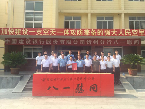 7月31日,八一建軍節(jié)來臨之際,忻州分行劉昱星行長攜紀委書記陳慶鵬、副行長趙彤、高級客戶經(jīng)理王平、副行長郝翀平及部分部門負責(zé)人前往空軍某部開展“軍銀攜手,共建同行”八一慰問活動,并遞交慰問信和慰問品。