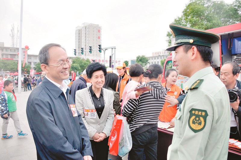 5月8日,在城市廣場舉辦的現(xiàn)場拉票活動中,志愿者們胸前貼著活動大賽二維碼標識的胸貼,向過往的市民宣傳著。一位臉上洋溢著笑容、胸前貼有二維碼標識的人引起了大家的關注?!澳銈兛炜矗遣皇青嵤虚L?”“市長從鄉(xiāng)下回城的路上,看到了群眾搞活動,當即決定現(xiàn)場助威?!薄吧曷谩毕嚓P工作人員李海燕回憶,下車后,市長與志愿者一樣胸前貼了二維碼,跟其他人一起宣傳,被市民“發(fā)現(xiàn)”后,還上臺做了脫稿演講,很多人都感動落淚?!案咐相l(xiāng)親們,我路過看到這兒啊,非常熱鬧,一了解呢,是咱們忻州市的志愿者自發(fā)為爭取忻州旅發(fā)大會的主辦權(quán),在進行活動、在進行拉票。我被我們忻州市民熱愛家鄉(xiāng)、熱愛忻州、期盼我們忻州越來越美好的這種追求和責任所深深感動。我在此代表市委市政府深深地謝謝大家。看到今天這個場面使我感到,我們有這樣好的市民,我們有這樣好的群眾,我們忻州沒有辦不成的事情,我們的忻州一定能夠越來越美好……”