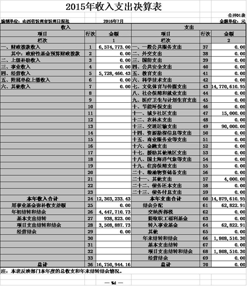 忻州日報社2015年度部門決算