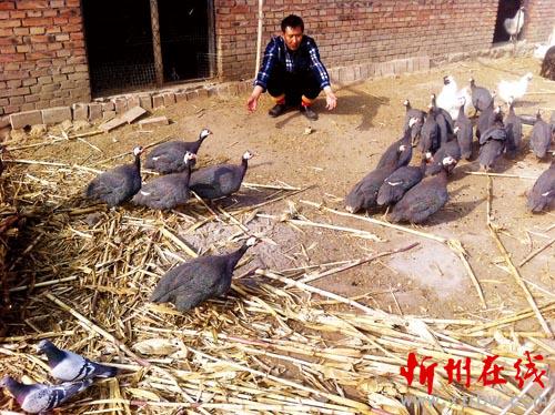 眼看著珍珠雞一天天長大,許寶才也越來越緊張,銷路是擺在他面前的一道難題。抱著試一試的心態(tài),他把自己的珍珠雞拍照后發(fā)到繁峙縣的一個微信公眾平臺上進行銷售,沒想到,電商的力量如此強大,僅年前數(shù)天時間,他的珍珠雞就銷售了50多只,而且全是上門采購?!拔椰F(xiàn)在不能賣了,眼看到了產(chǎn)蛋的時候。”他給記者算了一筆賬,“一只珍珠雞每年產(chǎn)蛋160只,每個珍珠雞蛋1兩重,每斤珍珠雞蛋25元,這100只雞下的蛋就能年收入四萬,之前銷售的雞已經(jīng)收回了成本,賣雞蛋的錢就是凈利潤了,而且養(yǎng)珍珠雞也不耽誤我干農(nóng)活。不過我現(xiàn)在擔(dān)心的是雞一天天長大,飛躍能力加強,低矮的圍墻根本無法阻擋它出去覓食的腳步,現(xiàn)在也只能靠剪短翅膀來放養(yǎng),我準(zhǔn)備過幾天再在院墻上加個網(wǎng)子?!痹S寶才已經(jīng)形成了一套管理珍珠雞的辦法,在外放養(yǎng)時,他只需打幾聲口哨,珍珠雞就會成群結(jié)伙地往院子里走?!案鷦e人的養(yǎng)法不一樣,我是生態(tài)養(yǎng)殖,要比圈養(yǎng)的投資大,生態(tài)養(yǎng)法是吃苞谷和野菜野草,不喂任何飼料。如果今年珍珠雞蛋暢銷的話,我打算再養(yǎng)烏雞、火雞等不同雞種,到時候既能當(dāng)觀賞雞賣,又能賣雞蛋,尤其是珍珠雞,肉質(zhì)筋道、富有營養(yǎng),銷路也好,目前來說,珍珠雞的市場前景很好,而且隨著人們健康意識的增強,這種散養(yǎng)的珍珠雞會越來越受到歡迎。”在許寶才心目中,致富之路越走越寬廣。