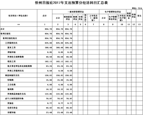 忻州日報社2017年度部門預(yù)算及“三公”經(jīng)費預(yù)算公開情況