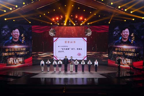 朱有勇在“時代楷模”發(fā)布儀式上領(lǐng)取獎?wù)潞妥C書(11月29日攝)。 新華社記者 金良快 攝