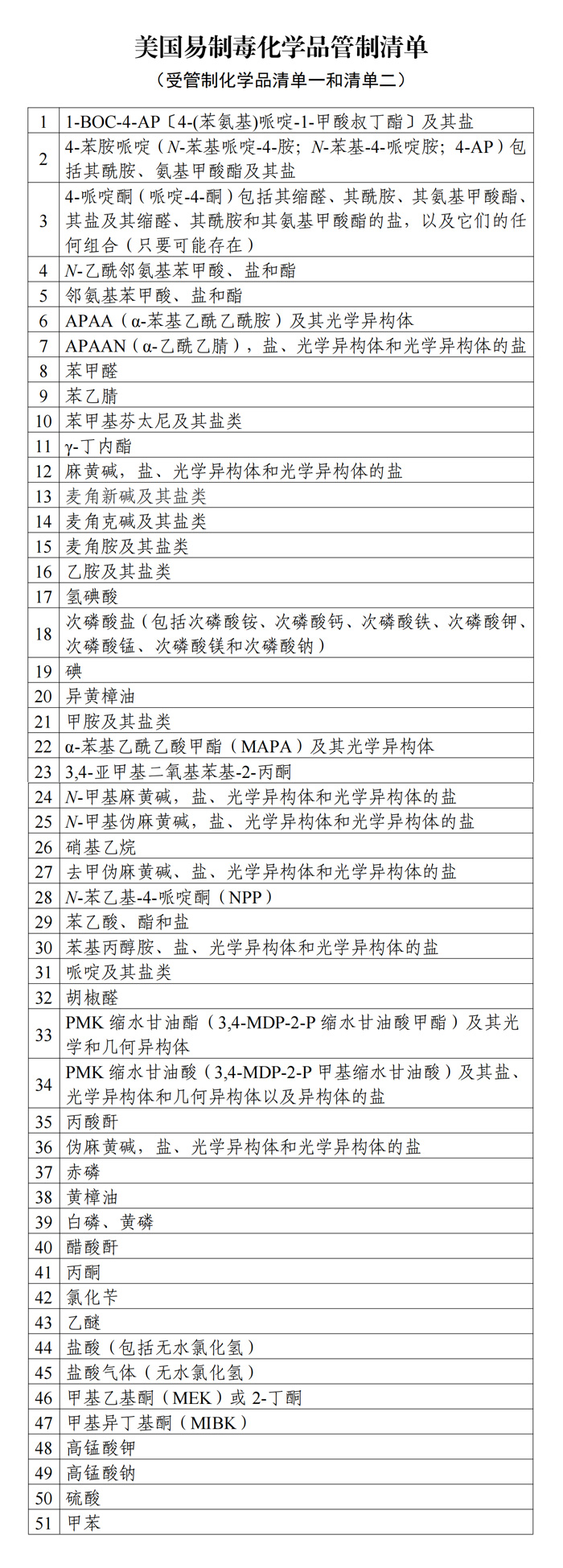 8.涉及美國管制化學(xué)品(品種詳見附件)的生產(chǎn)、經(jīng)營、進(jìn)出口企業(yè)和個(gè)人應(yīng)謹(jǐn)慎對待來自美國和墨西哥等相關(guān)國家的訂單,警惕出口物品被用于制造毒品和可能面臨的“長臂管轄”甚至“釣魚執(zhí)法”的風(fēng)險(xiǎn)。