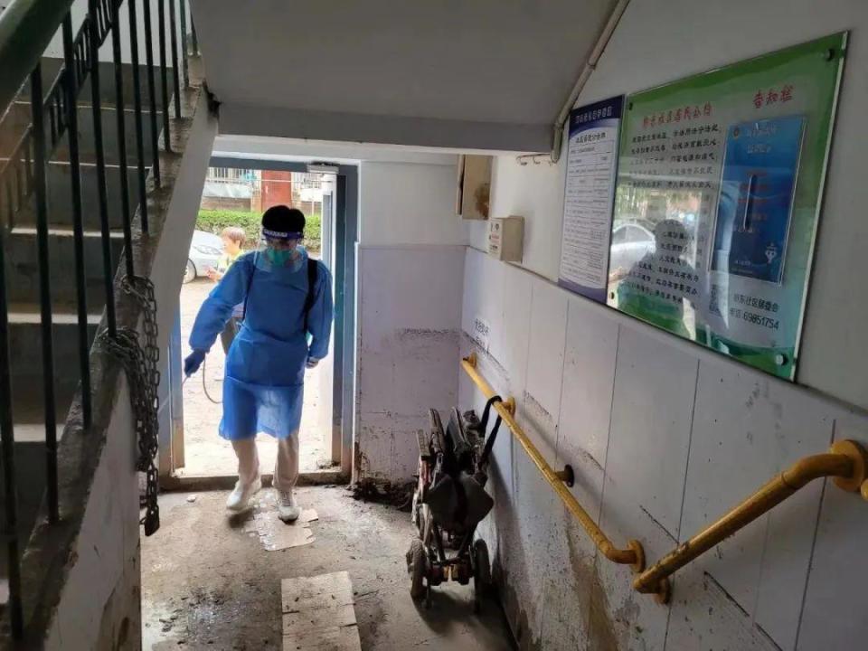 “益行志愿服務(wù)隊從8月4日17點下班后開始組織救災(zāi)工作,到凌晨24點充分準備完畢。總計出動9輛汽車,志愿者們對社區(qū)內(nèi)的一樓單元門口、垃圾分類驛站、居民家里、黨群活動中心、居委會物資庫、社區(qū)花園內(nèi)和道路,開展清理淤泥和清洗路面工作?!睆垈惤榻B道。