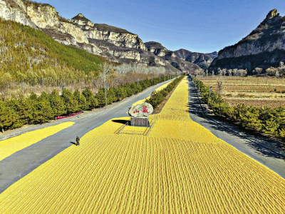 山西晚報(bào)·山河+訊(記者 溫麗芳)近日,在陽(yáng)泉盂縣藏山景區(qū),一條由金黃玉米鋪就的“黃金大道”,在青山、藍(lán)天的映襯下,構(gòu)成一道別樣的冬日風(fēng)景。據(jù)了解,藏山景區(qū)主動(dòng)騰退千米道路,為周邊農(nóng)戶提供免費(fèi)晾曬場(chǎng)地,讓豐收的玉米與巍峨的太行山水相映成畫,繪就了一幅農(nóng)旅共融的生動(dòng)圖景。 受今年秋季連陰雨天氣影響,我省局地的秋糧存在潮濕、晾曬場(chǎng)地不足等情況。為解決農(nóng)戶燃眉之急,近日,陽(yáng)泉盂縣藏山風(fēng)景區(qū)趁著冬季旅游淡季,在不影響正常游覽的情況下,將部分停車場(chǎng)、游覽大道等騰出來,供十里八鄉(xiāng)的農(nóng)戶晾曬秋糧。 藏山景區(qū)副總經(jīng)理田慧告訴山西晚報(bào)·山河+記者,景區(qū)結(jié)合冬季客流特點(diǎn),在不影響核心游覽區(qū)域的前提下,專門規(guī)劃了這條從景區(qū)入口延伸至停車場(chǎng)的“助農(nóng)曬場(chǎng)”,總面積超2萬平方米?!拔覀儼才帕藢H酥凳兀纫龑?dǎo)游客安全通行,又幫農(nóng)戶照看晾曬的糧食,讓大家收得安心、曬得放心?!?/p> 從空中俯瞰,景區(qū)標(biāo)志性的刻有“藏山”字樣的巨石,被連片的玉米“花?!杯h(huán)繞,綿延千米的道路上,玉米粒被村民們精心鋪成整齊的波紋狀,宛如一條流淌的金色長(zhǎng)河?!敖衲昃皡^(qū)把這么寬的路讓給我們晾曬糧食,真的解決了我們一大難題!”正在翻曬玉米的村民李師傅說道。 這一暖心舉措也贏得了游客的廣泛好評(píng)。來自太原的游客張女士特意在這里拍照留念,“第一次見到景區(qū)給農(nóng)民讓道曬糧,既能欣賞藏山的壯美風(fēng)光,又能感受到濃濃的鄉(xiāng)土溫情,這樣的景區(qū)太溫暖了!”目前,這條“黃金大道”已成為藏山景區(qū)的新晉打卡點(diǎn),不少游客專程前來,在金黃的玉米地旁留影,記錄下這份獨(dú)特的豐收記憶。 藏山景區(qū)的“讓路曬糧”行動(dòng),不僅解決了農(nóng)戶的實(shí)際困難,更成為文旅企業(yè)踐行社會(huì)責(zé)任的生動(dòng)實(shí)踐。據(jù)了解,景區(qū)還將根據(jù)實(shí)際情況延長(zhǎng)曬場(chǎng)使用時(shí)間,并計(jì)劃在明年秋收季擴(kuò)大晾曬區(qū)域,讓這條“黃金大道”成為連接景區(qū)與鄉(xiāng)村的暖心紐帶。 (責(zé)任編輯:梁艷) |