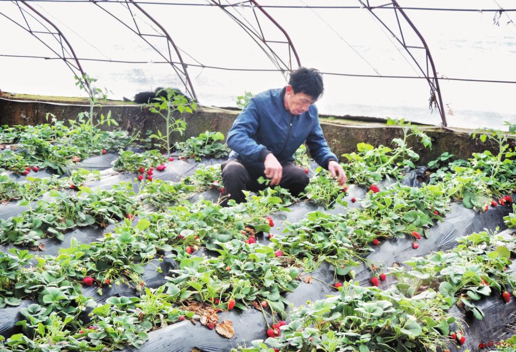 3月22日,孫元寶正在河曲縣文筆鎮(zhèn)南元村瓜果園區(qū)的元寶草莓園內(nèi)忙活??恐h的富民政策和自己勤勞的雙手,他的3畝大棚年收入可達8萬元左右。 (袁保明 攝)
