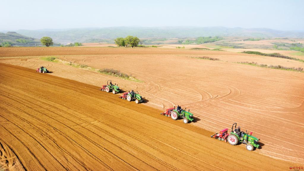 5月23日,寧武縣馬營村村民正在使用機械種植莜麥。寧武縣是莜麥的傳統(tǒng)種植區(qū),2017年,“寧武莜麥”榮獲農(nóng)業(yè)部“農(nóng)產(chǎn)品地理標志”登記保護,2020年10月16日,中國糧食行業(yè)協(xié)會命名寧武縣為“中國高原莜麥之鄉(xiāng)”。寧武縣現(xiàn)已建成莜麥標準化種植基地5萬畝,產(chǎn)量達到1260萬公斤,占到山西省莜麥總產(chǎn)量的10%以上,培育發(fā)展起以“蘆芽農(nóng)夫”“鄉(xiāng)之味”等自主品牌為龍頭的莜麥深加工企業(yè)。 (曹建國 攝)