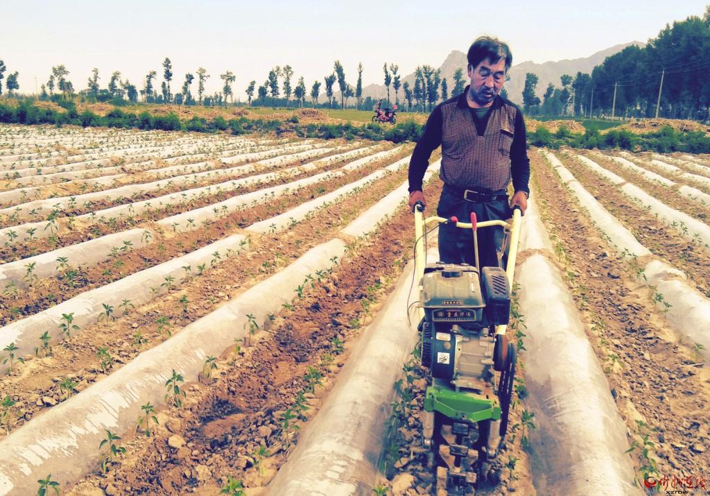 6月1日,在原平市子干村千畝辣椒地里,農(nóng)民正在用小型鋤地機清除雜草。據(jù)了解,定襄縣白村農(nóng)民郭建勇等在子干村承包土地1000畝,種植優(yōu)種辣椒,既幫助村民流轉(zhuǎn)了土地、增加了收入,又可實現(xiàn)自己的致富夢。 (華 浩 攝)