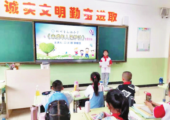 為加強(qiáng)對(duì)未成年人的思想道德教育,保護(hù)自身合法權(quán)益,增強(qiáng)安全意識(shí),6月11日,忻州市長(zhǎng)征小學(xué)組織各班開(kāi)展了《未成年人保護(hù)法》學(xué)習(xí)宣傳教育活動(dòng)。 (馮偉倫 攝)