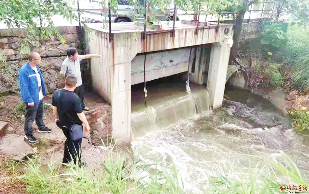 為確保汛期水質(zhì)穩(wěn)定,市生態(tài)環(huán)境局忻府分局在與氣象部門取得聯(lián)系,了解降雨強度、持續(xù)時間的同時,加大了降雨期間對污水處理廠溢流口、重點河段的巡查力度。圖為該分局雨后巡查市污水處理廠外溢流口。 (張劍雄 攝)