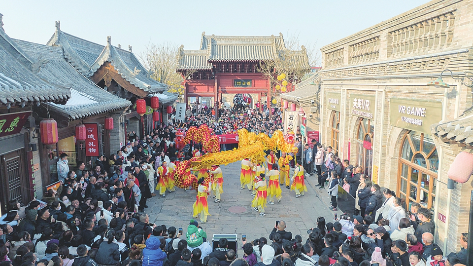 每年的“平遙中國年”都看點十足?!?024平遙中國年”推出了貫穿整個春節(jié)的“龍祥鳳瑞‘迎’新春”“龍躍鳳舞‘鬧’新春”“龍章鳳彩‘賀’新春”三大板塊15項活動。新春祈福、點“靚”古城、非遺社火等民俗活動持續(xù)上演,各地游客沉浸式體驗了獨具平遙地方特色和晉商韻味的民俗民風(fēng)。