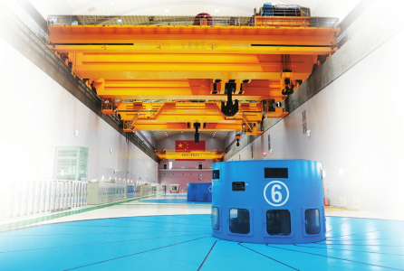 踏入這座智能化水平位居世界前列的水電站主廠房,映入眼簾的是震撼的工業(yè)圖景,耳中持續(xù)回響側(cè)排電箱發(fā)出的規(guī)律嗡鳴。廠房上空數(shù)十米處,太重研制的兩臺1000t橋式起重機(jī)正有條不紊地吊起巨大構(gòu)件緩緩掠過高空,精準(zhǔn)地運(yùn)往指定地點(diǎn)。沒有想象中的劇烈震顫與遲緩操作,所有動作都流暢而精準(zhǔn),令人贊嘆。