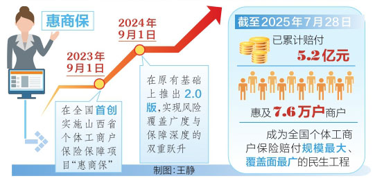 省市場監(jiān)管局相關(guān)負(fù)責(zé)人表示,“惠商?!表椖恳浴靶”kU”撬動“大民生”,通過“兜底+賦能”的雙重保障,將政策關(guān)懷轉(zhuǎn)化為個體工商戶可感知、可量化的獲得感。項目將持續(xù)迭代升級,在風(fēng)險保障深度、服務(wù)賦能精度、生態(tài)共建廣度上發(fā)力,助力個體工商戶從“生存型”向“價值型”躍遷,為個體經(jīng)濟(jì)高質(zhì)量發(fā)展注入持久動能。截至2025年7月28日,“惠商?!币牙塾嬞r付5.2億元,惠及7.6萬戶商戶,成為全國個體工商戶保險賠付規(guī)模最大、覆蓋面最廣的民生工程。